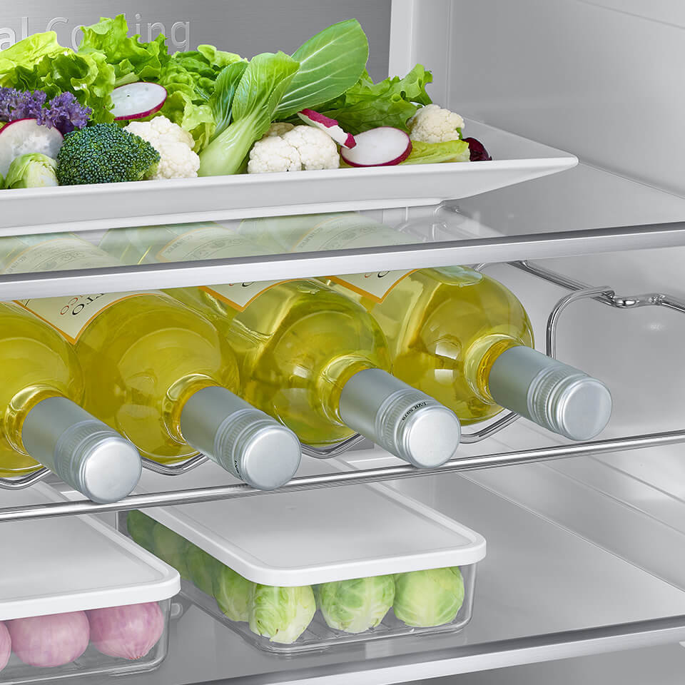 Napoje butelkowane mają swoje miejsce w lodówce. Nie zajmują cennej przestrzeni na półkach, ani na drzwiach. Zawsze są doskonale schłodzone. Na półce zmieści się aż 5 butelek z napojami.