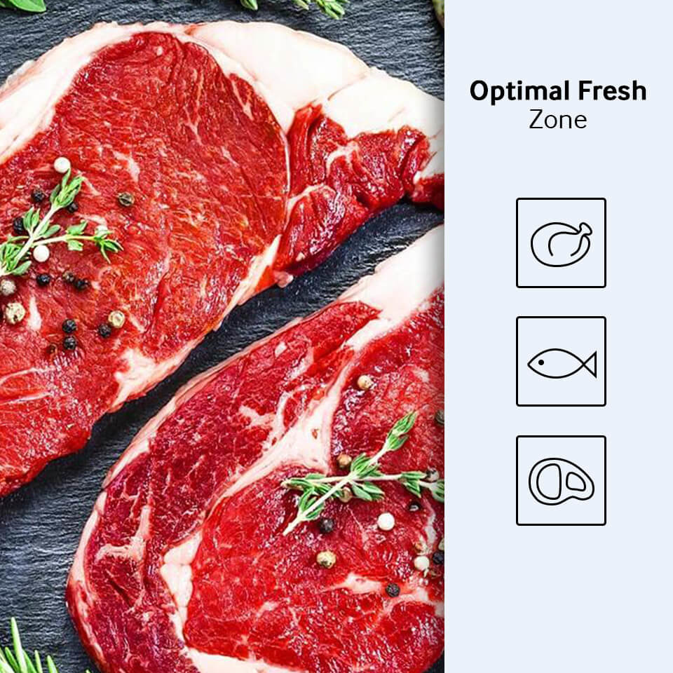 Przechowuj mięso i ryby w optymalnych dla nich warunkach w szufladzie o obniżonej temperaturze. Produkty zachowają na dłużej świeżość i smak.