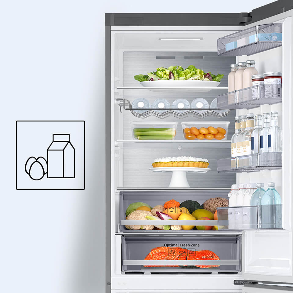 Lodówki Samsung to więcej miejsca do przechowywania Twoich potraw, żywności czy napojów. Dzięki technologii Space Max™ i jej wyjątkowemu i wysoce wydajnemu systemowi izolacji ścianki urządzenia stały się cieńsze, a przestrzeń użytkowa uległa powiększeniu.