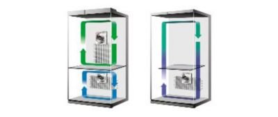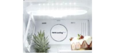 | Twin Cooling System Komory chłodziarki i zamrażarki są sterowane niezależnie. Pomiędzy obiema częściami nie ma obiegu powietrza, dzięki czemu w lodówce powietrze jest wystarczająco wilgotne, aby warzywa pozostawały świeże, podczas gdy w zamrażarce powietrze jest suche i pozbawione zapachów. |