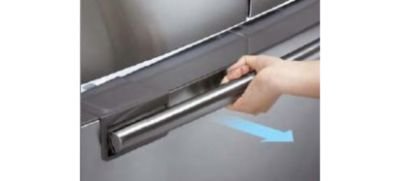 Poręczny uchwyt Zaprojektowany, aby łatwo otwierać lodówkę i szczelnie ją zamykać. Aby otworzyć nawet najbardziej załadowaną lodówkę, wystarczy delikatnie pociągnąć za uchwyt. |