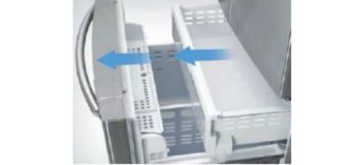 | Szuflada z automatycznym wysuwem Duża wysuwana szuflada jest wyposażona w ruchomą przegrodę, która oddziela różne rodzaje żywności, ułatwiając ich przechowywanie. |