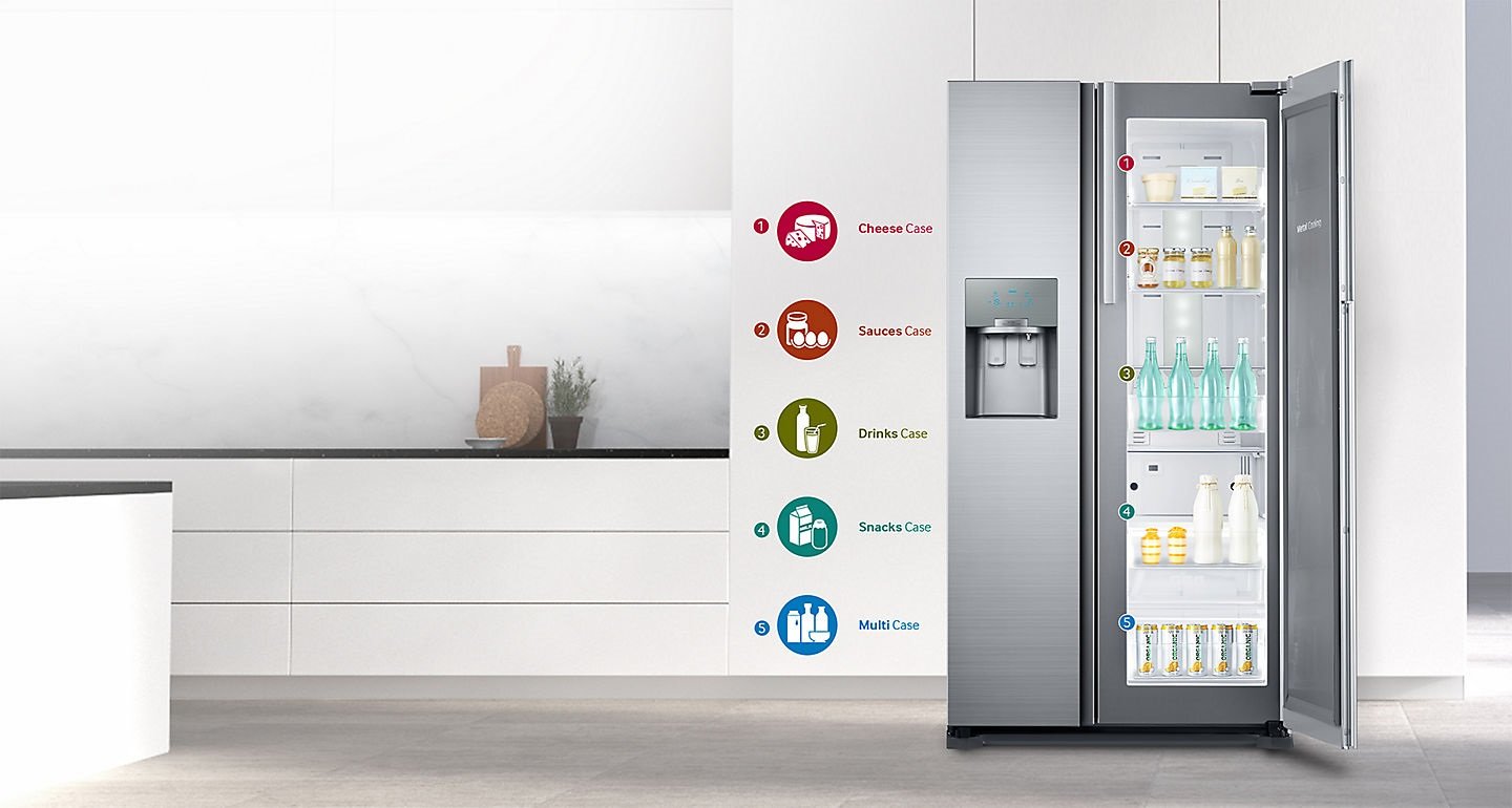 Ulubione produkty na wyciągnięcie ręki Drzwi ShowCase to niejako „lodówka w lodówce“. Rozwiązanie to zapewnia szybki i łatwy dostęp do produktów ulubionych i często spożywanych przez Twoją rodzinę. Drzwi mają 5 dużych pojemników na konkretne produkty dla każdego członka rodziny. |