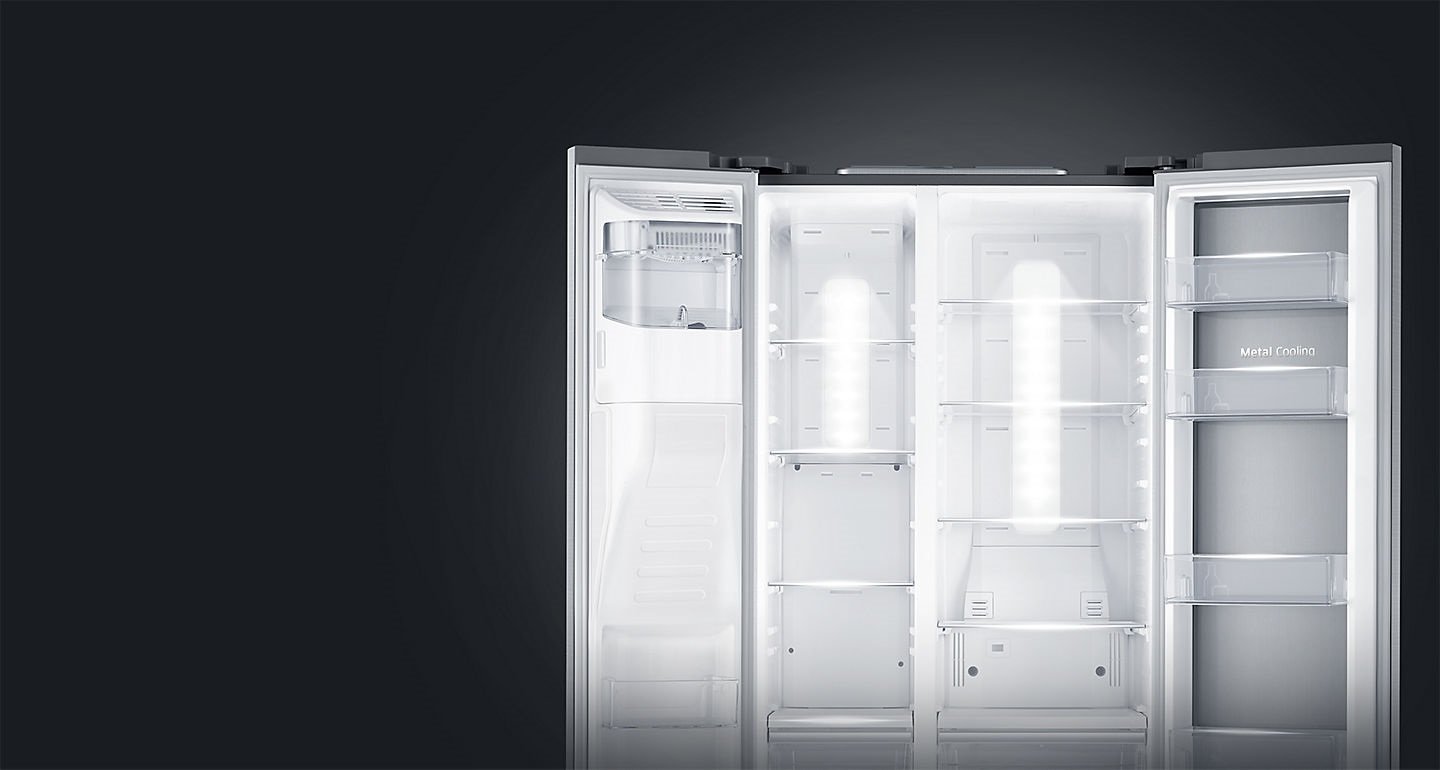 | Zobacz wyraźnie, co jest w środku Wysokowydajne oświetlenie LED jest delikatniejsze i bardziej wydajne energetycznie niż tradycyjne. Rozmieszczono je od góry do dołu, po obu stronach tylnej ścianki. Pięknie się prezentuje i wspaniale oświetla każdy róg, zapewniając lepszą widoczność niż oświetlenie górne. |