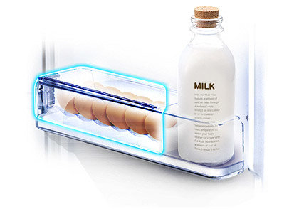 Przechowuj bezpiecznie jajka, układając je w poręcznym pojemniku. Większa pojemność umożliwia przechowywanie większej liczby sztuk, a zamykany pojemnik chroni pozostałą część lodówki przed ewentualnymi zabrudzeniami pochodzącymi z rozbitych skorupek.