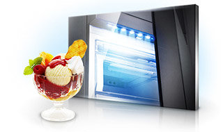 Wyrafinowany niebieski wyświetlacz LED nadaje drzwiom lodówki elegancki i super nowoczesny wygląd, podnosząc jednocześnie jej funkcjonalność i walory estetyczne. Łatwy w obsłudze wyświetlacz umożliwia sterowanie temperaturą i trybami pracy, bez potrzeby otwierania drzwi lodówki.