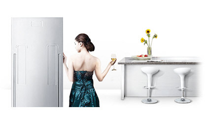 Wyrafinowany niebieski wyświetlacz LCD nadaje drzwiom lodówki elegancki i bardzo nowoczesny wygląd, podnosząc jednocześnie jej funkcjonalność i walory estetyczne. Łatwy w obsłudze wyświetlacz umożliwia sterowanie temperaturą i trybami pracy, bez potrzeby otwierania drzwi lodówki.