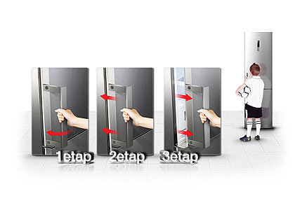Żadnego szarpania ani ciągnięcia przy otwieraniu. Uchwyt Easy Handle ułatwi otwieranie lodówki – jest tak prosty w użyciu, że może z niego korzystać nawet dziecko. Innowacyjny uchwyt, zaprojektowany z naciskiem na komfort i wygodę, sprawia, że otwieranie dużych drzwi lodówki serii Grand nie przysparza żadnych trudności. Bez konieczności używania dodatkowej siły. W końcu...