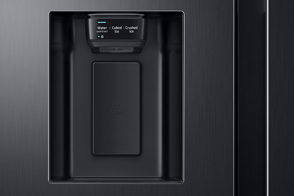 Świeża, schłodzona woda w zasięgu ręki. Nie trzeba otwierać drzwi chłodziarki, aby po nią sięgnąć. Kostkarka od wewnątrz urządzenia jest przezroczysta, dlatego zawsze widać, ile jest lodu.