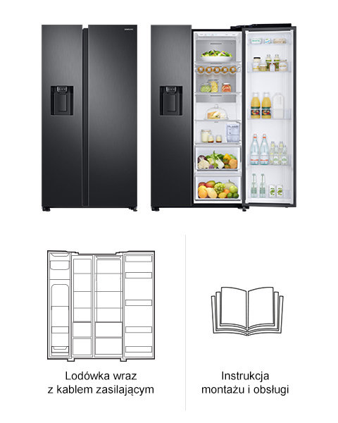 - Lodówka SAMSUNG RS68N8220B1/EF Side by Side No frost 178cm Grafitowa Podajnik wody Kostkarka