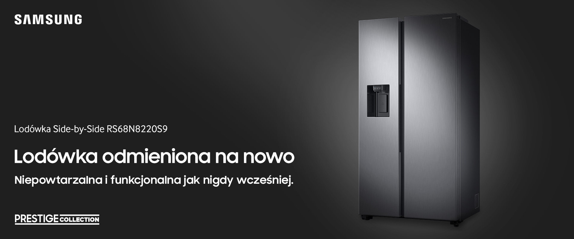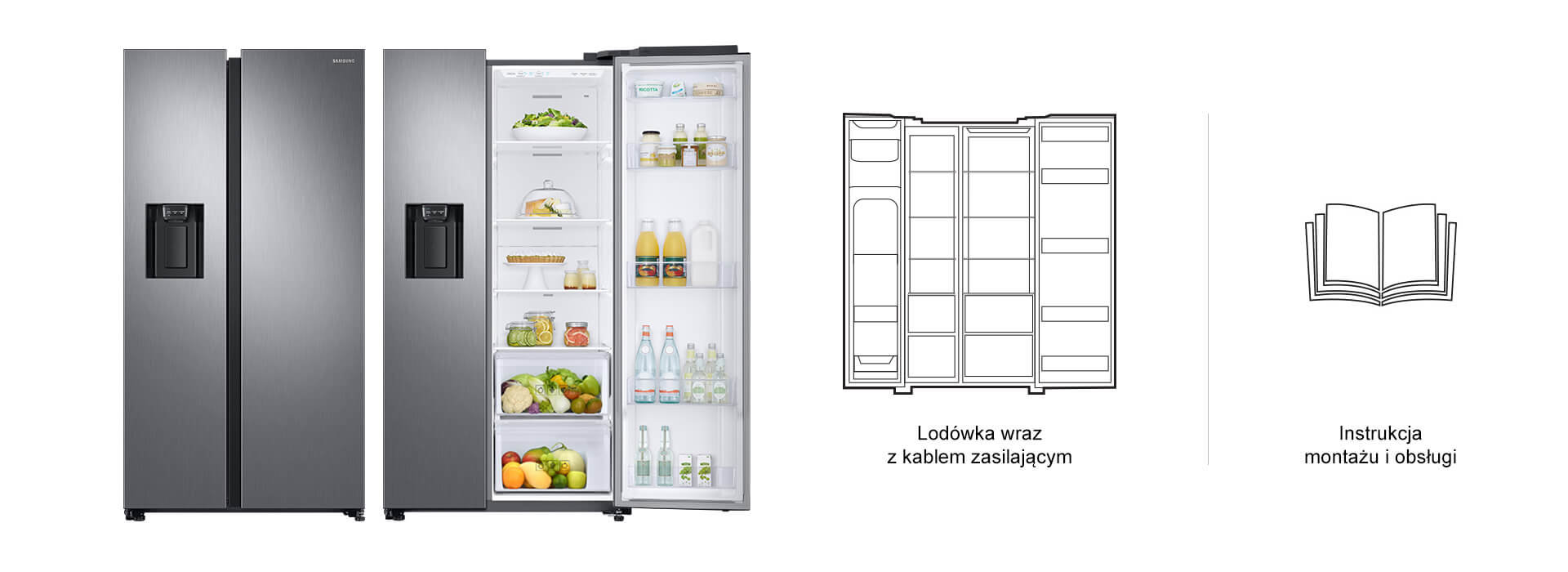 - Lodówka SAMSUNG RS68N8220S9 Side by Side No frost 178cm Srebrna Podajnik wody Kostkarka