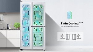 Soczysta żywność - Twin Cooling Plus™ Żywność pozostaje soczysta i świeża dwa razy dłużej. Technologia Twin Cooling Plus™ optymalizuje temperaturę i wilgotność w lodówce oraz zamrażarce. Dzięki niezależnym obiegom powietrza zapachy nie mieszają się a żywność zachowuje swój naturalny aromat. |
