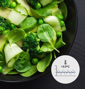 | Niezawodna świeżość - Technologia Precise Chef Cooling Zachowaj świeżość, aromat i teksturę żywności przez dłuższy czas. Kompresor Digital Inverter dostosowuje prędkość pracy tak, aby maksymalnie ograniczyć wahania temperatury do ±0,5°C. |