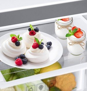 Wysuwana półka – łatwy dostęp do produktów - Półka Easy Slide Wyjęcie produktu z tylnej części lodówki nierzadko oznacza konieczność pokonania całego toru przeszkód. Łatwo wysuwana półka przymocowana na zawiasach z rolkami umożliwia lepsze wykorzystanie przestrzeni i ułatwia dostęp do produktów, pozwala też szybko sprawdzić, co znajduje się w tylnej części urządzenia. |