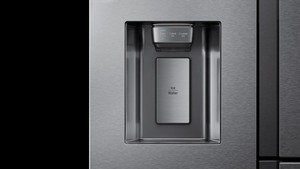 Ukryty wyświetlacz i prosty dyspenser - Minimalistyczny design Ciesz się prostym sposobem na ochłodę. Niewielki dyspenser i ukryty wyświetlacz dopełniają minimalistycznego wzornictwa lodówki. Dyspenser elegancko wpasowuje się we frontowe drzwi, dlatego z łatwością sięgniesz do niego po wodę lub lód. Pozostałe elementy panelu sterowania zostały dyskretnie ukryte, choć zawsze znajdują się pod ręką. |