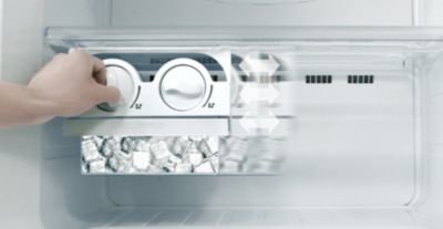 Kostkarka twistowa Wygodna kostkarka twistowa, z której wysypiesz kostki lodu do pojemnika poniżej wykonując tylko jeden ruch pokrętłem. |
