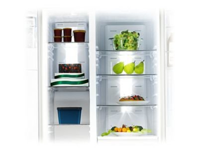 | Rzuć nowe światło na oszczędność energii i przestrzeni Oświetlenie LED zamontowane jest na tylnej ściance we wnętrzu urządzenia, a nie u góry, dzięki czemu zyskujesz więcej miejsca na wysokie przedmioty. Technologia LED emituje mniej ciepła niż tradycyjne żarówki, dlatego też chłodziarko-zamrażarka nie musi zużywać dodatkowej energii, aby utrzymać odpowiednią temperaturę. A ponieważ energooszczędne oświetlenie jest również bardzo jasne, z pewnością nikt nie będzie mieć problemu z odróżnieniem galaretki winogronowej od dżemu truskawkowego, nawet na najniższej półce. |