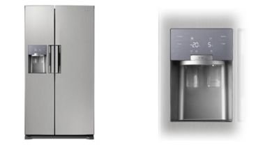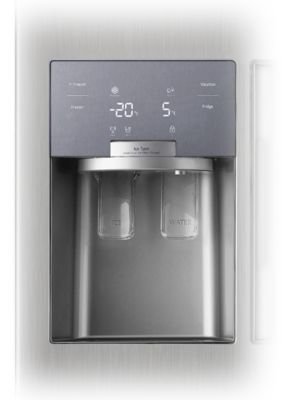 | Błyskawiczny dostęp do lodu i wody Dystrybutor lodu i wody to prosty sposób na orzeźwienie, a do tego jest elegancko wykończony w kolorze chłodnego błękitu. Za jednym naciśnięciem przycisku możesz nalać sobie chłodnej filtrowanej wody lub napełnić pojemnik lodem. |