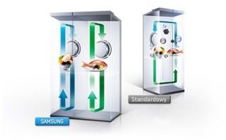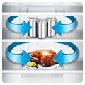 | Technologia Multi Flow Działa na każdym poziomie za sprawą niewielkich otworów umieszczonych nad każdą półką, utrzymując równomierną temperaturę wewnątrz urządzenia, w szczególności po otwarciu drzwi. Chłodząc każdy zakamarek, w tym samym czasie umożliwia zachowanie świeżości żywności na dłużej. |