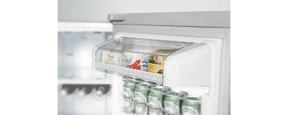 Pokrywa szuflady otwiera się całkowicie przy wysuwaniu ułatwiając wkładanie i wyjmowanie żywności oraz pozwala maksymalnie wykorzystywać przestrzeń.