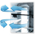 Aby zachować wyrównaną i stałą temperaturę, chłodne powietrze przepływa przez całą komorę wieloma otworami na wysokości każdej półki.