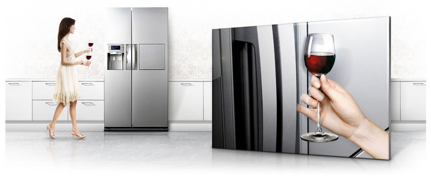 Dozownik wody i lodu jest wyposażony w wysoki podajnik, dzięki czemu zarówno dzbanki, jak i wysokie szklanki mogą być szybko napełniane przefiltrowaną wodą i kostkami wody. Nie ma znaczenia, co pijesz lub z czego nalewasz, ważne, że teraz masz do tego łatwy dostęp.