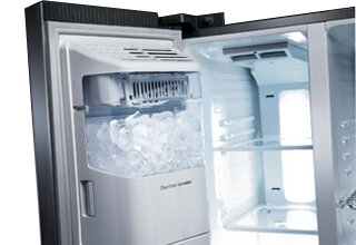 Dozownik wody i lodu jest wyposażony w wysoki podajnik, dzięki temu zarówno dzbanki, jak i wysokie szklanki mogą być szybko napełniane przefiltrowaną wodą i kostkami lodu. Nie ma znaczenia, co pijesz lub z czego nalewasz, ważne, że teraz masz do tego łatwy dostęp.