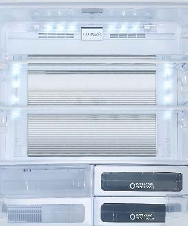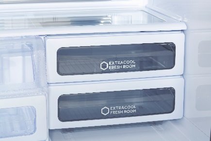 Czytelne ikonograficzne oznaczenia szuflad do przechowywania produków w chłodziarce i zamrażarce. |