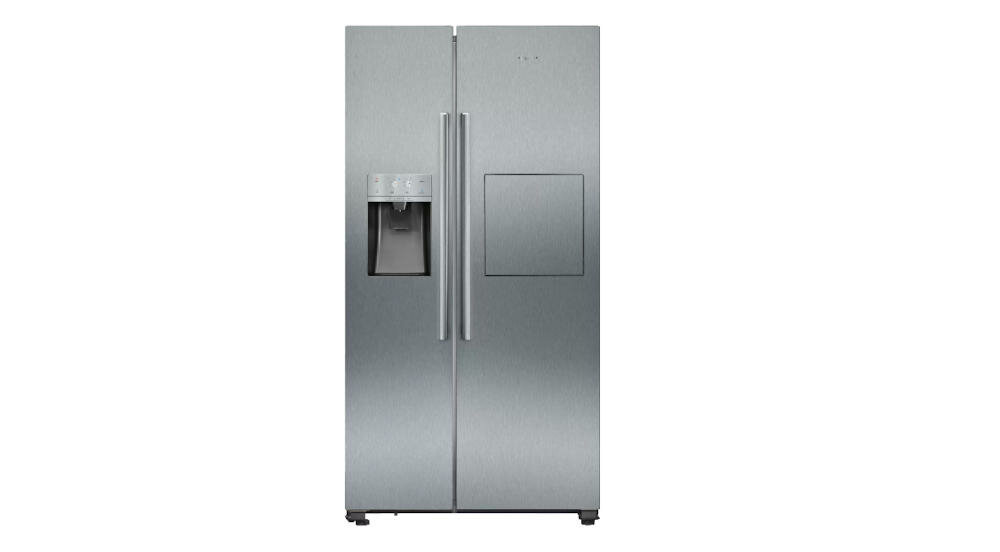Lodówka SIEMENS KA93GAIEP Side by Side No frost 178.7cm Srebrna Podajnik wody Kostkarka