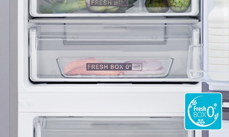 Zapewnia optymalne warunki przechowywania delikatnych potraw, takich jak ryby lub mięso w temperaturze 0°C