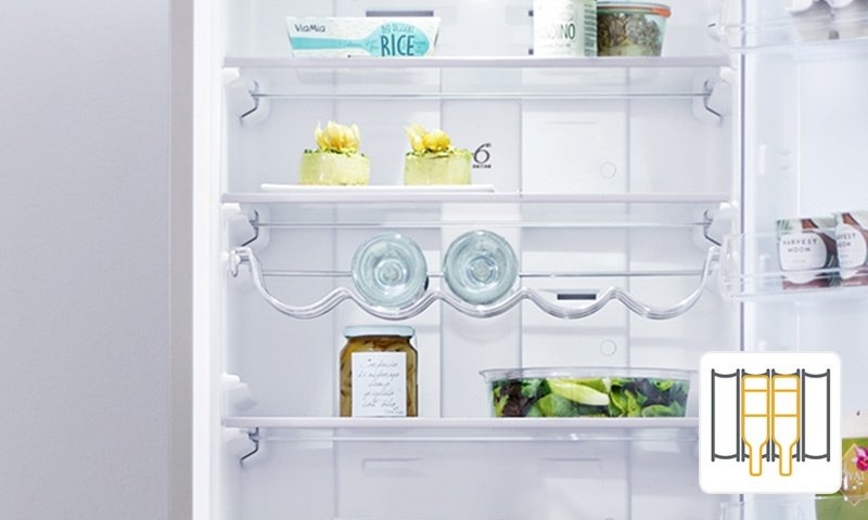 Wydzielona część w chłodziarce umożliwiająca bezpieczne przechowywanie butelek.