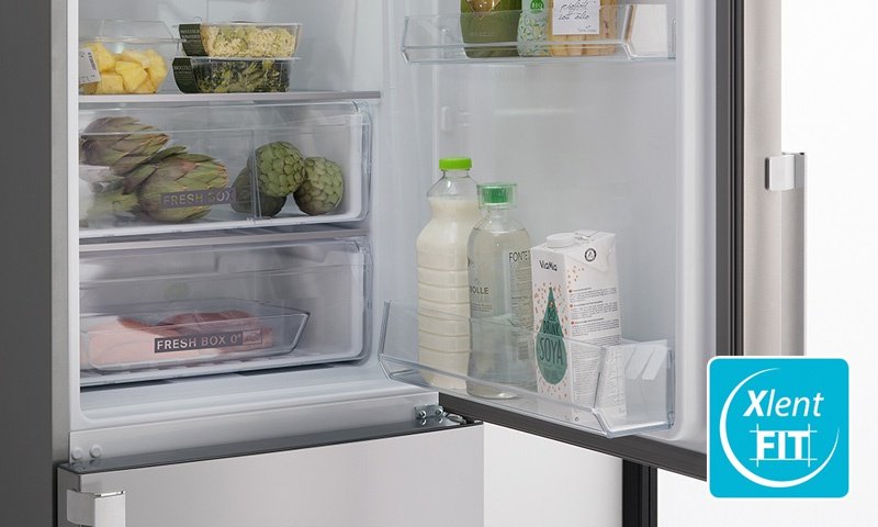 Technologia oświetlenia LED rozprowadza światło po całym wnętrzu urządzenia. Daje wspaniały efekt wizualny i pozwoli Ci łatwiej odnaleźć przechowywaną w lodówce żywność.