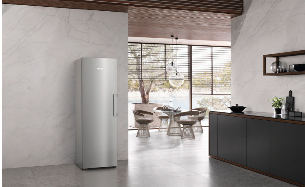 Większa pojemność na produkty mrożone. Bardzo wysoka szuflada do zamrażania zapewnia wyraźnie większą pojemność. Dzięki temu można zyskać wiele miejsca i swobody w przechowywaniu mrożonek.