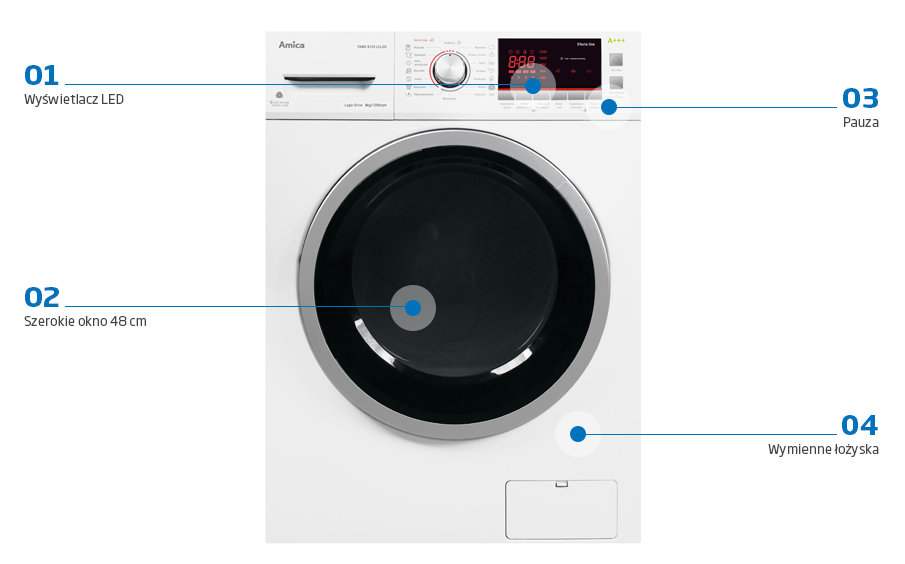 Dowiedz się więcej o funkcjach pralek Amica.