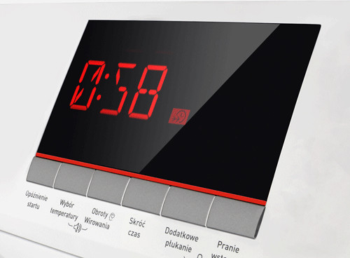 Ten model pralki posiada czytelny Duży wyświetlacz LED, dzięki któremu możliwe jest łatwe odnalezienie i wybór pożądanych parametrów. Jego obsługa jest intuicyjna, więc szybko dobierzesz takie ustawienia, które będą odpowiednie dla aktualnie pranych tkanin.