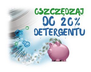 AquaFusion Podczas prania w standardowych pralkach około 20% detergentu jest nieefektywnie wypłukiwane z wodą. Innowacyjna technologia AquaFusionTM polega na zablokowaniu odpływu co zapobiega stratom proszku, tak że jest on wykorzystywany praktycznie w całości. Dzięki temu efektywność prania jest większa, a Ty oszczędzasz detergent i pieniądze podczas każdego prania. |