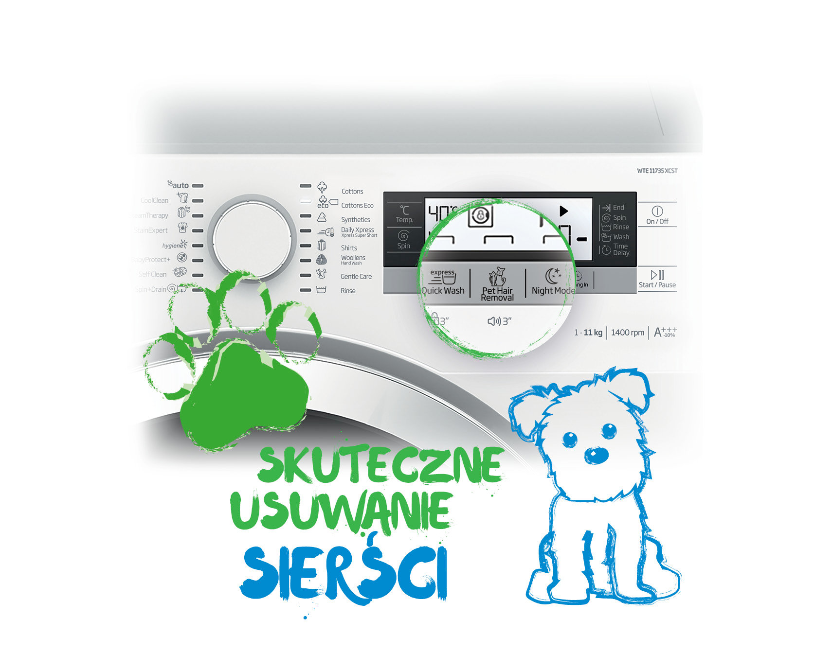 | Funkcja Pupil Beko znalazło doskonałe rozwiązanie dla wszystkich miłośników zwierząt domowych a w szczególności włochatych pupili. Specjalna funkcja PUPIL w wybranych modelach pralek Beko doskonale usuwa sierść Twojego czworonożnego przyjaciela. Dzięki innowacyjnym technologiom zastosowanym w produktach firmy Beko, nie musisz wyskubywać czy wygotowywać sierści z pokrytych nią ubrań. W pralkach posiadających funkcję PUPIL postawiliśmy na wielokrotne płukanie i odwirowywanie tak, by Wasze ubrania po skończonym praniu były idealnie czyste. Ponadto dodatkowe podgrzewanie wody ma na celu skutecznie rozluźniać włókna tkanin przed samym procesem płukania tak, by jak największa ilość sierści mogła zostać skutecznie usunięta. Cykl prania, który został specjalnie zmodyfikowany z myślą o Waszych Pupilach, doskonale sprawdzi się nawet w przypadku najbardziej włochatych przyjaciół. |