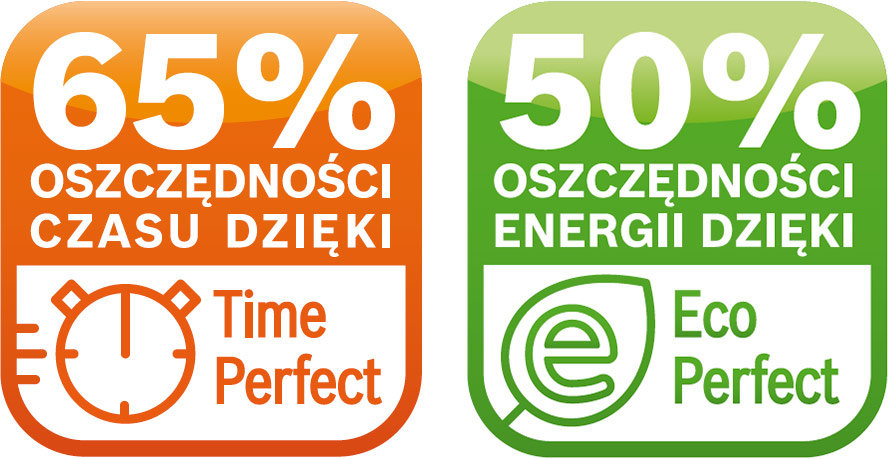 Dzięki tej funkcji każdy może wyprać ubrania tak, jak jest mu najwygodniej: wyjątkowo szybko lub bardzo oszczędnie. Jeśli zależy Ci na czasie, włącz opcję TimePerfect; jeśli chcesz oszczędzać energię i chronić środowisko naturalne, zastosuj opcję EcoPerfect. VarioPerfect® pozwala aktywować jeden z wariantów w różnych programach prania. Teraz nie musisz wybierać między pralką szybką, a oszczędną – to pralka dostosuje się do Twojego rytmu!