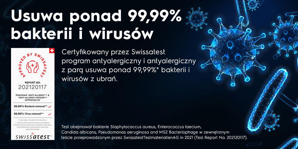 To idealnie dopełnienie programów z parą dzięki czemu z odzieży zostają usunięte bakterie i alergeny zapewniając higieniczne i delikatne pranie.