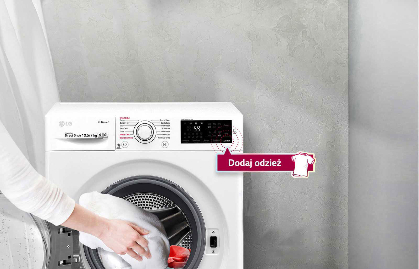 Szybkie i oszczędne dzięki funkcji Turbowash™ Funkcja natrysku wodnego TurboWash™ znacznie ogranicza czas prania, oszczędza mnóstwo energii i zapewnia dokładniejsze pranie ubrań. Natrysk wodny działa bezpośrednio na tkaninę przez około 120 sekund, dzięki czemu cykle prania i płukania z napędem bezpośrednim 6 Motion są skuteczniejsze niż kiedykolwiek wcześniej. |