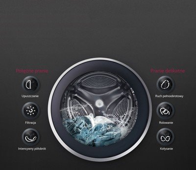 | Optymalne pranie tkanin Po wybraniu programu prania technologia napędu bezpośredniego 6 Motion porusza bębnem pralki w wielu kierunkach, zapewniając właściwą pielęgnację tkaniny przy doskonałej czystości ubrań. |