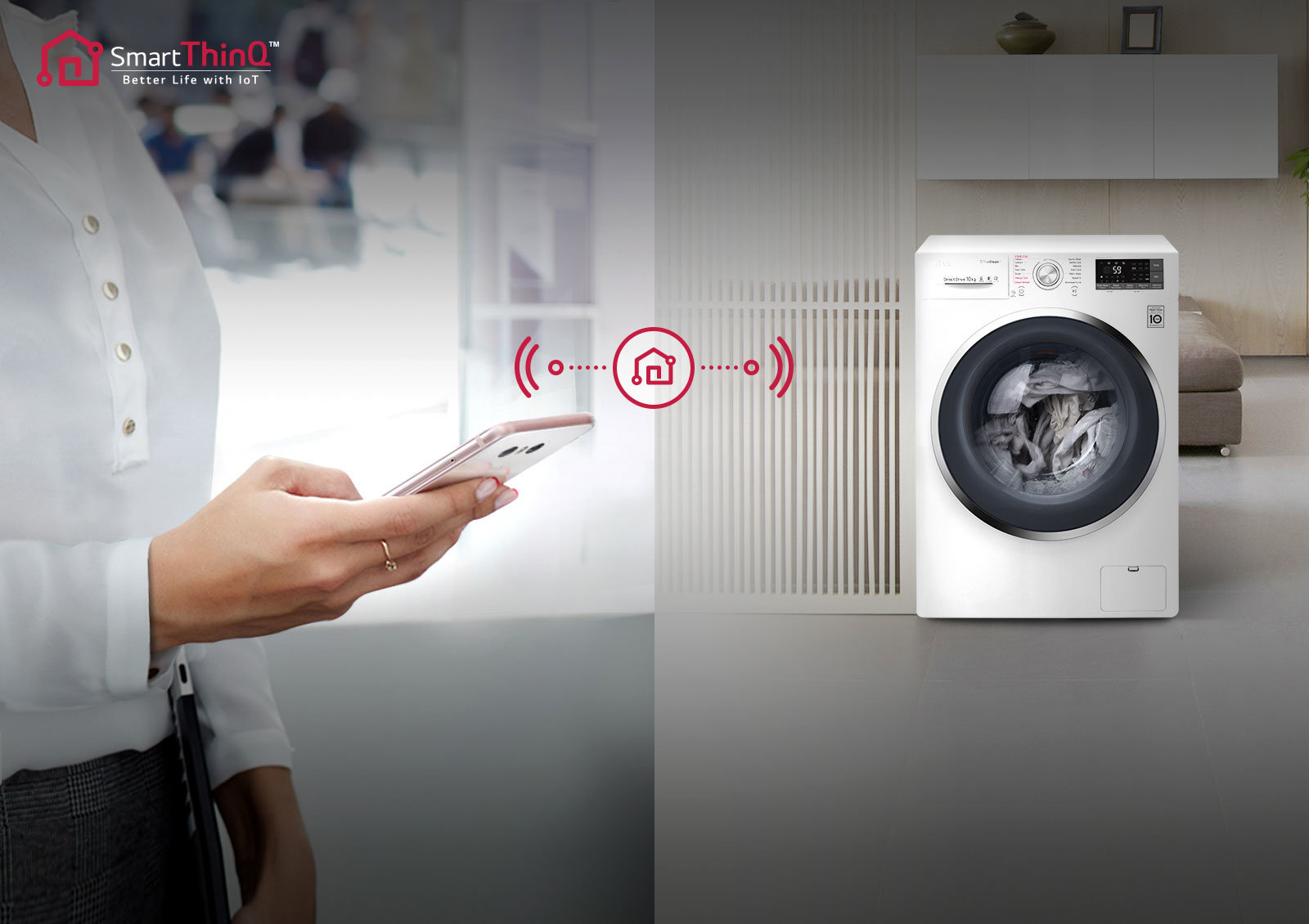 | Inteligentna wygoda dzięki technologii SmartThinQ™ Twoja pralka jest już wystarczająco inteligentna, aby można ją było obsługiwać zdalnie i pobierać dodatkowe programy prania. Łącze Wi-Fi zapewnia łatwą obsługę i dostęp do wielu innowacji. |