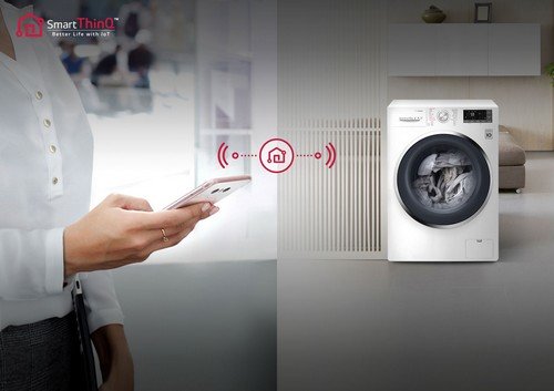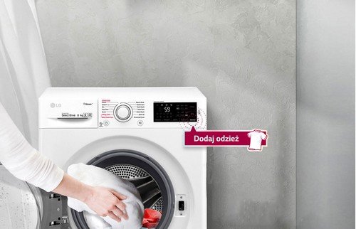 Inteligentna wygoda dzięki technologii SmartThinQ™ Twoja pralka jest już wystarczająco inteligentna, aby można ją było obsługiwać zdalnie i pobierać dodatkowe programy prania. Łącze Wi-Fi zapewnia łatwą obsługę i dostęp do wielu innowacji. |