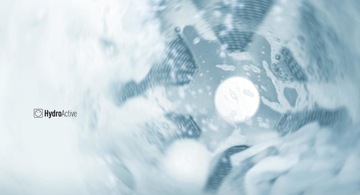 System HydroActive to rozwiązanie zakładające równomierne wtryskiwanie detergentu i wody głęboko do bębna za pomocą dwóch dysz, co usprawnia proces namaczania ubrań i tym samym przyspiesza rozpoczęcie usuwania brudu. Dzięki temu pranie trwa krócej, a każdy jego cykl jest zdecydowanie dokładniejszy.
