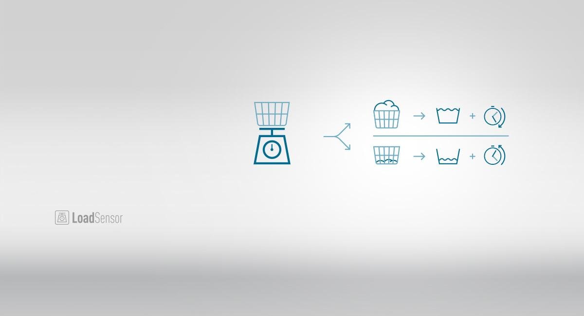 Czujnik wsadu wykrywa wielkość wsadu i reguluje poziom wody dodawanej w celu zapewnienia optymalnych wyników oraz idealnego poziomu zużycia energii i wody. Wraz ze wzrostem wielkości wsadu wzrasta zużycie wody i długość cyklu.