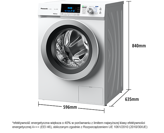 Zwiększ maksymalnie oszczędności na energii i wodzie podczas każdego prania. Pralka NA-148XS1 posiada certyfikat zużycia energii na poziomie A+++, ale jest o 40% wydajniejsza. Posiada ona bęben o pojemności 8 kg, dzięki któremu można robić większe prania, zmniejszyć ich częstotliwość i zaoszczędzić jeszcze więcej czasu oraz energii.