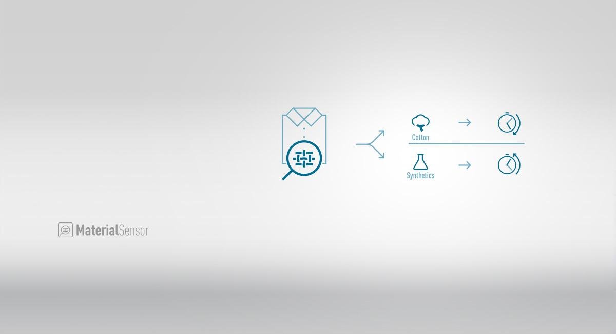 Czujnik materiału pranej odzieży wykrywa równowagę włókien pranych ubrań (stosunek włókien syntetycznych do bawełnianych) i odpowiednio reguluje liczbę cykli wirowania oraz całkowity czas wirowania.