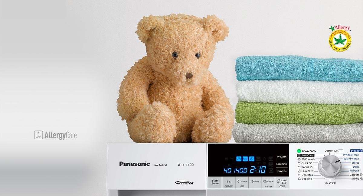 Teraz alergicy mogą wyeliminować 99% pospolitych alergenów, korzystając z programu Allergy-care. Wysokie stężenie pary niszczy roztocza, pyłki i szereg innych często występujących alergenów, dzięki czemu odzież nie podrażnia.