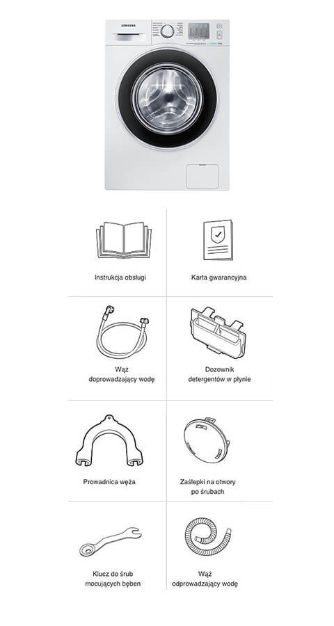 Pralce Samsung przyznano najwyższą klasę efektywności energetycznej. Oznacza, że urządzenie skutecznie oszczędza energię elektryczną i zużywa mniej wody w skali roku, co przekłada się na mniejsze rachunki.