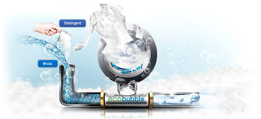 Aby nie niszczyć tkanin gorącą wodą i nie marnować energii na jej podgrzewanie, Samsung opracował przełomową technologię Eco Bubble™. Polega ona na wytworzeniu miliona delikatnych bąbelków w wyniku rozpuszczenia detergentu już na początku cyklu prania. W takiej postaci bąbelkowa piana o wiele efektywniej wykorzystuje piorące właściwości detergentu i wnika w tkaniny do 40 razy szybciej i głębiej. Tak rozpuszczonemu detergentowi wystarczy niska temperatura wody, aby prać tak samo skutecznie jak w gorącej.